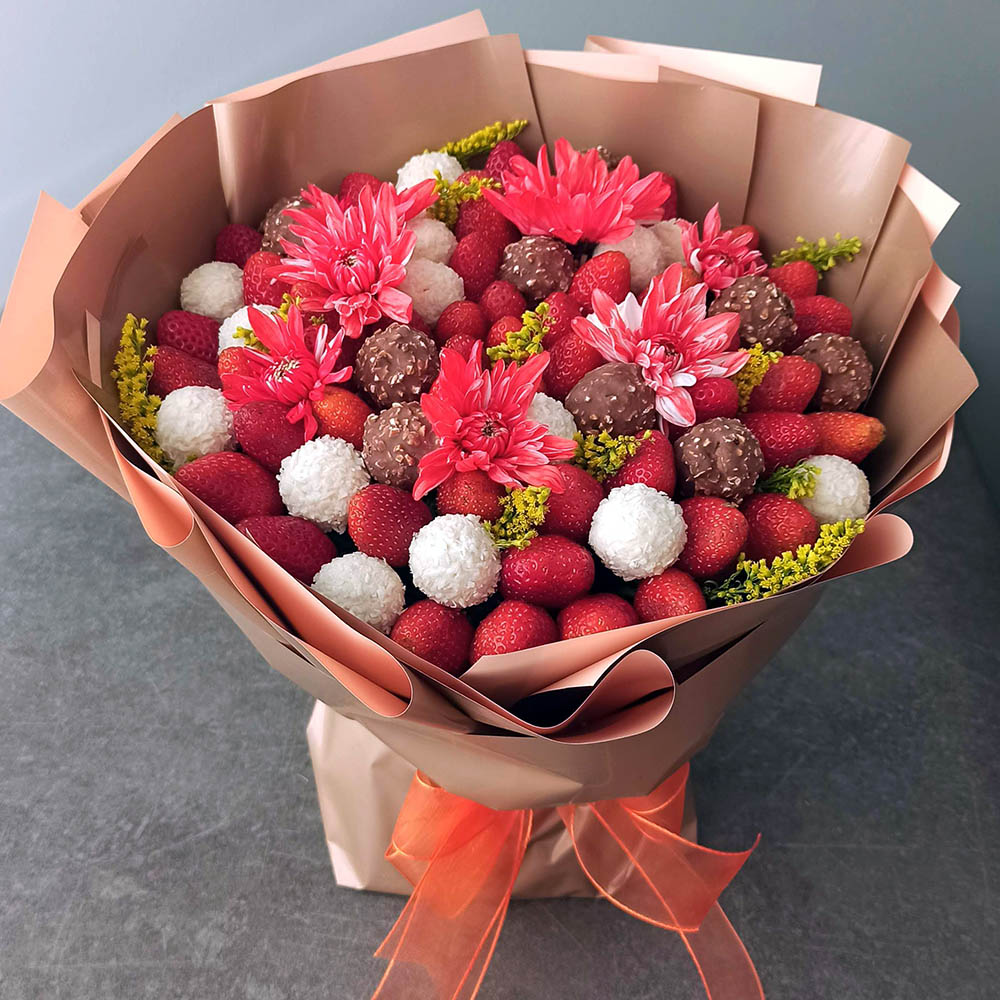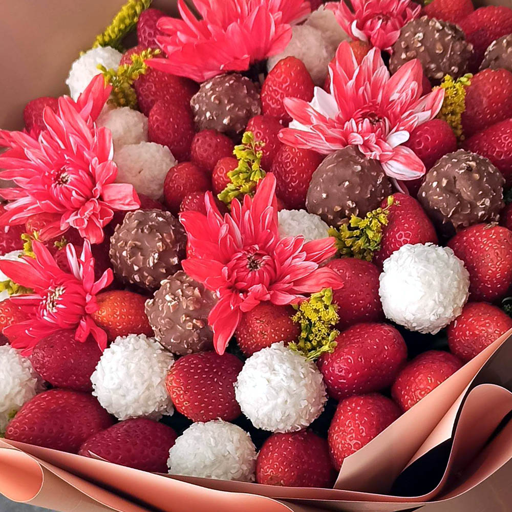 Они могут быть фруктовые, сладкие, мясные, рыбные, ореховые или комбинированные. Каждый букет создаётся как произведение искусства: красиво, стильно и при этом вкусно.