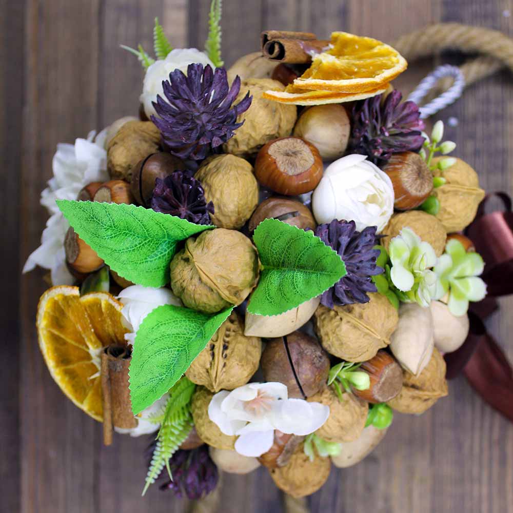 Они могут быть фруктовые, сладкие, мясные, рыбные, ореховые или комбинированные. Каждый букет создаётся как произведение искусства: красиво, стильно и при этом вкусно.