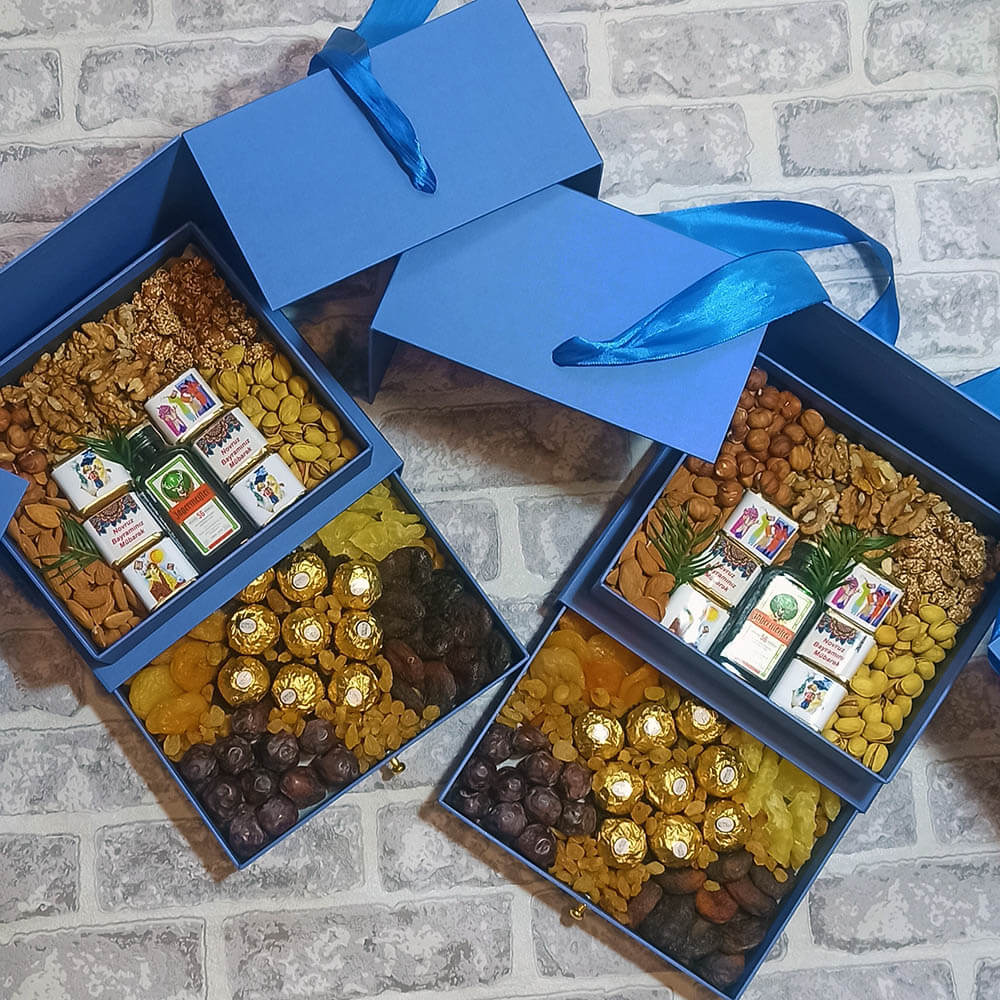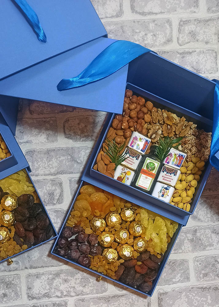 Фрукты, сладости, орехи, закуски, деликатесы — мы соберём наполнение под любой вкус и повод.